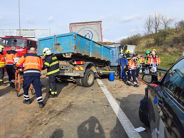 Hromadná nehoda zavřela Pražský okruh ve směru na Brno. (10. dubna 2025)