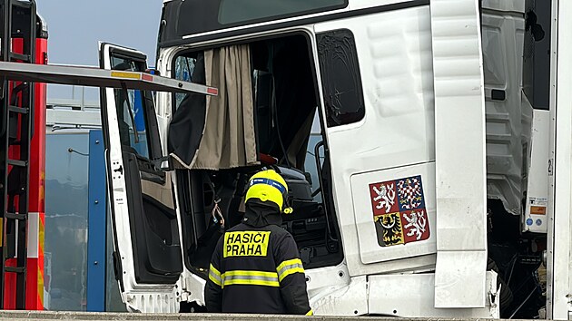 Na pražském okruhu ve směru na D5 se ve čtvrtek před polednem srazily tři nákladní automobily. . (24. října 2024)