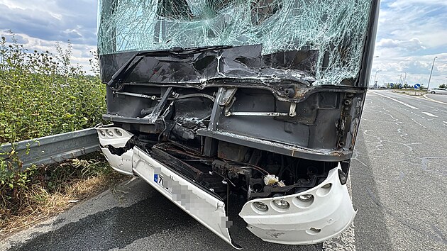 U ruzyňského letiště na pomezí Pražského okruhu a D7 se srazila cisterna s autobusem, v němž cestovaly tři desítky dětí. (14. července 2025)