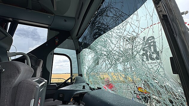 U ruzyňského letiště na pomezí Pražského okruhu a D7 se srazila cisterna s autobusem, v němž cestovaly tři desítky dětí. (14. července 2025)