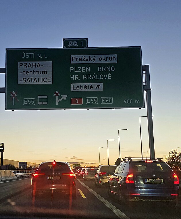 V kolonách. Na D10 u Prahy od Mladé Boleslavi se tvoří dlouhé kolony.