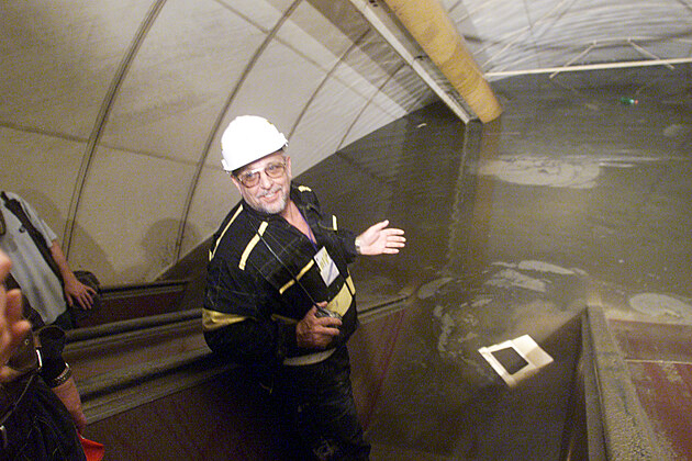 Zaplavené metro ve stanici Florenc. Praha. Povodně 2002.