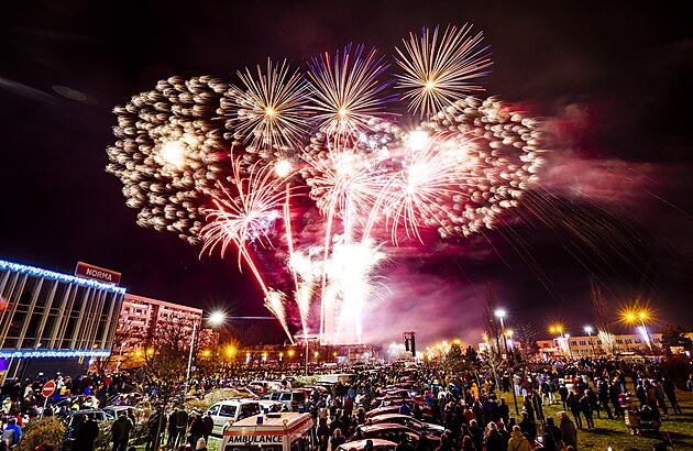 V Kladně přivítali nový rok velkolepým ohňostrojem. (1. ledna 2024)