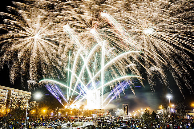 V Kladně přivítali nový rok velkolepým ohňostrojem. (1. ledna 2024)