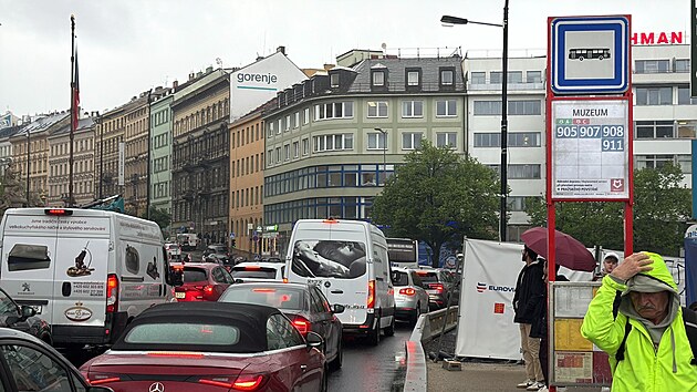 Průsak vody do technologických částí zastavil provoz ve stanici metra Muzeum. (24. dubna 2025)