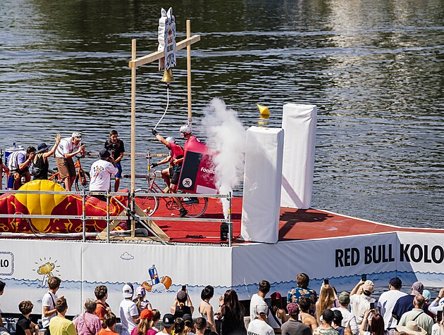 Red Bull Kolo Molo je bláznivá cyklistická výzva. Týmy na dvojkolech v maskách se pokoušely překonat stometrovou lávku s nástrahami. (21. června 2025)