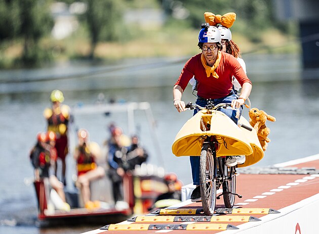 Red Bull Kolo Molo je bláznivá cyklistická výzva. Týmy na dvojkolech v maskách se pokoušely překonat stometrovou lávku s nástrahami. (21. června 2025)