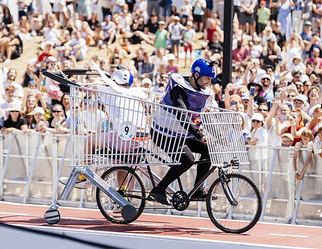 Red Bull Kolo Molo je bláznivá cyklistická výzva. Týmy na dvojkolech v maskách se pokoušely překonat stometrovou lávku s nástrahami. (21. června 2025)
