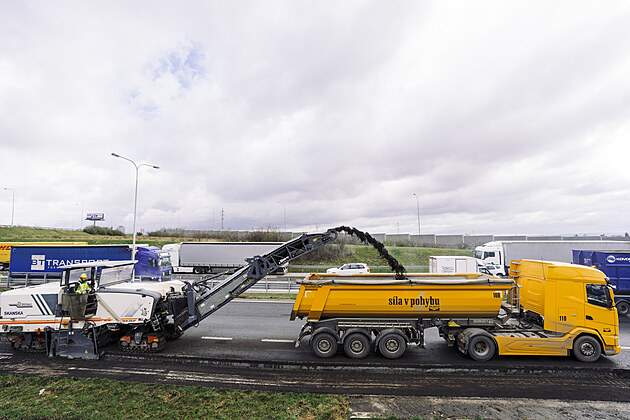 Na Pražském okruhu v úseku od ústí Lochkovského tunelu ke sjezdu na Slivenec začala v pondělí po zimní přestávce druhé polovina výměny povrchu vozovky. (31. března 2025)