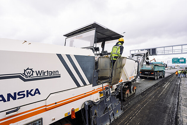 Na Pražském okruhu v úseku od ústí Lochkovského tunelu ke sjezdu na Slivenec začala v pondělí po zimní přestávce druhé polovina výměny povrchu vozovky. (31. března 2025)