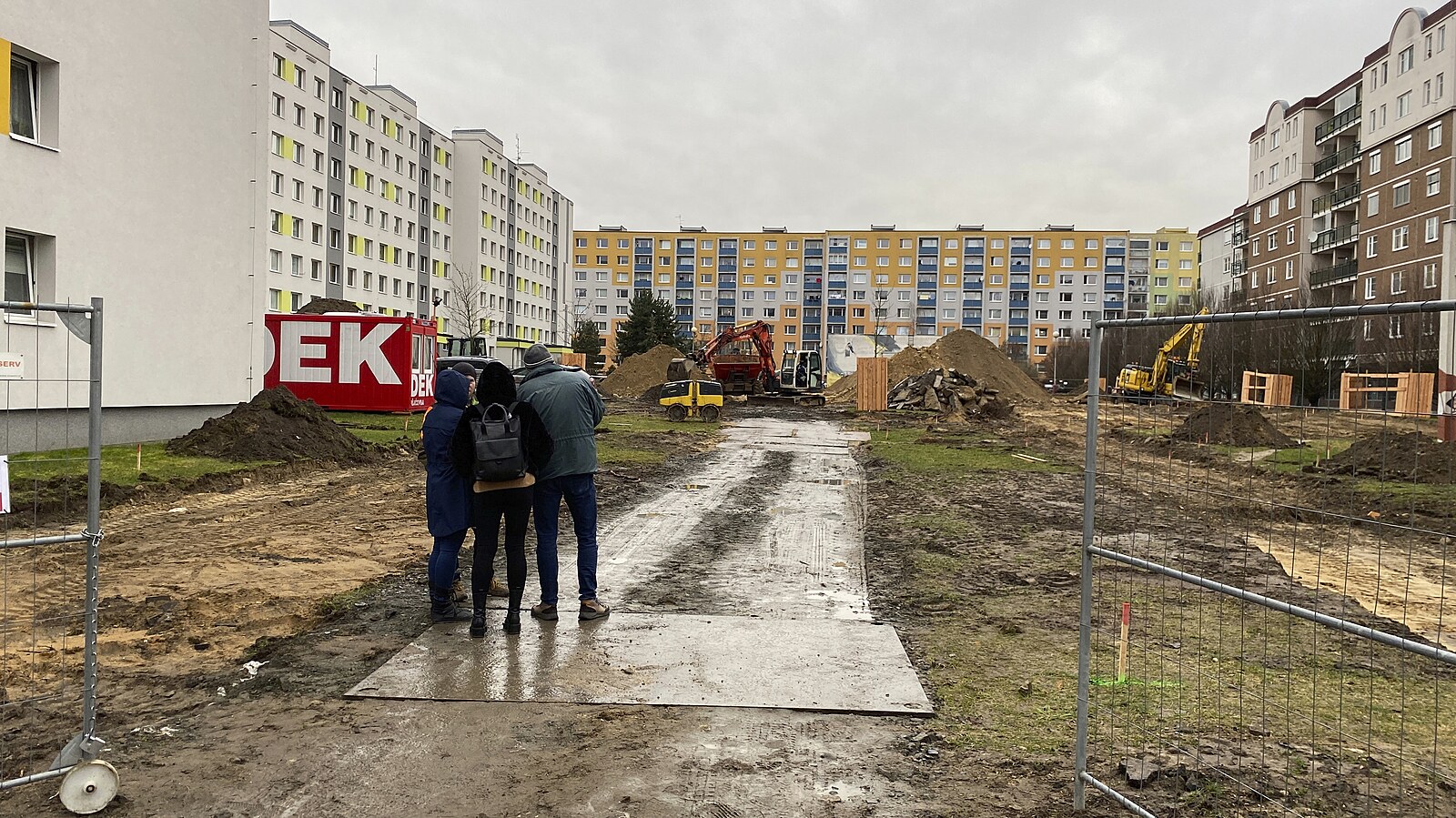 Bahno, beton a stavební stroje vládnou vnitrobloku na sídlišti v ulici 17. listopadu v Mladé Boleslavi.