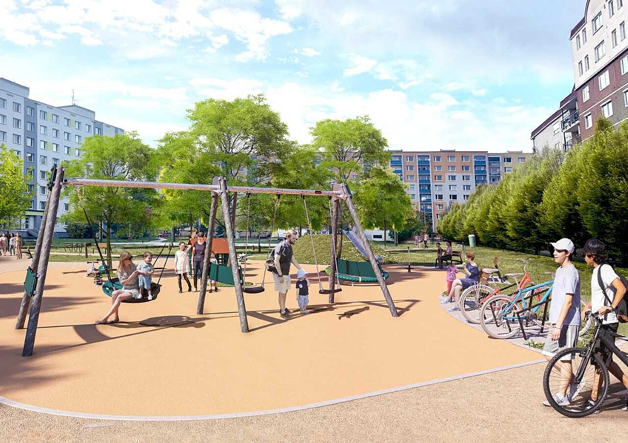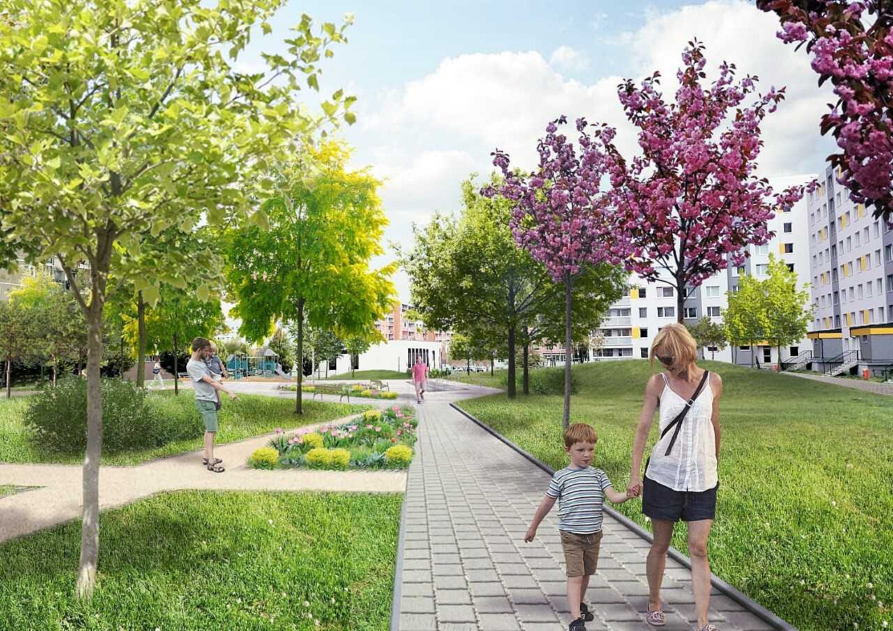Vizualizace vnitrobloku na sídlišti v ulici 17. listopadu v Mladé Boleslavi (27. února 2024)