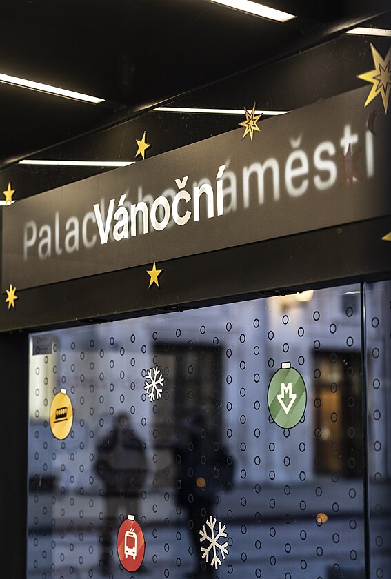 Zastávka Palackého náměstí ve směru na Karlovo náměstí se změnila na Vánoční. V nazdobeném přístřešku mohli zájemci napsat Ježíškovi, co by přáli sobě a městské hromadné dopravě v Praze. (18. prosince 2024)