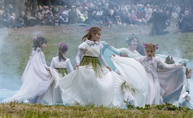 Tři dějství byla proložena patnáctiminutovými přestávkami, ve kterých se mohli jít návštěvníci podívat přímo k Rusalčinu jezírku nebo na strom staré čarodějnice. Poté se zase uvelebili ve stráni pod stromy a sledovali příběh o nešťastné lásce lesní žínky a prince.