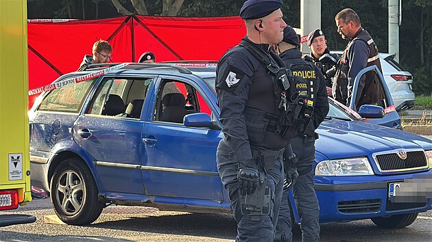 Pražští policisté zasahovali v ulici Plzeňská v Praze. Muž, který se sebepoškozoval přímo v autě na benzínové pumpě, svým zraněním podlehl. (3. října 2025)