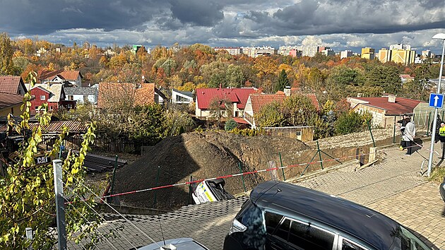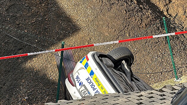 Sesuv půdy ve Stodůlkách strhl auto strážníků, převrátilo se na střechu. (3. listopadu 2025)
