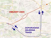 Objízdná trasa povede obousměrně ulicemi Švehlova a Průmyslová.