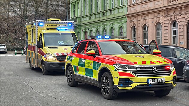 Zásah záchranné služby u podezřelé látky v ulici Pernerova na Praze 8. (10. ledna 2025)
