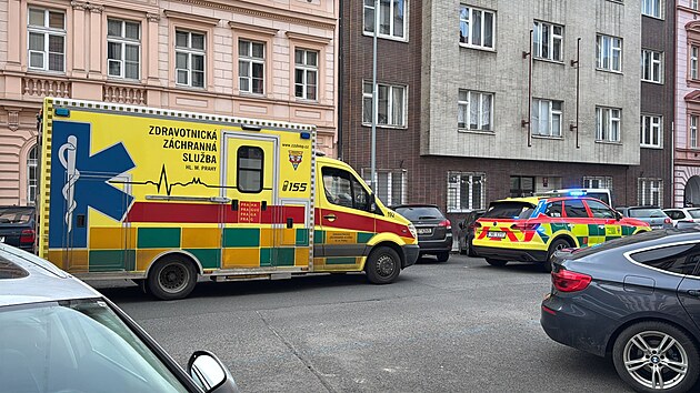 Zásah záchranné služby u podezřelé látky v ulici Pernerova na Praze 8. (10. ledna 2025)