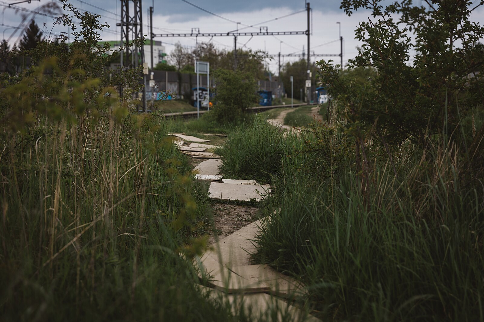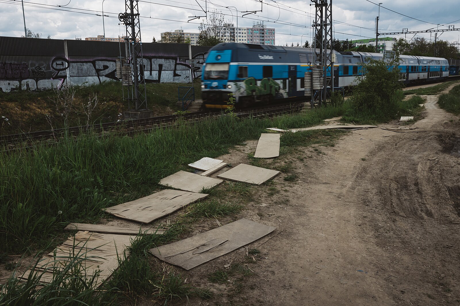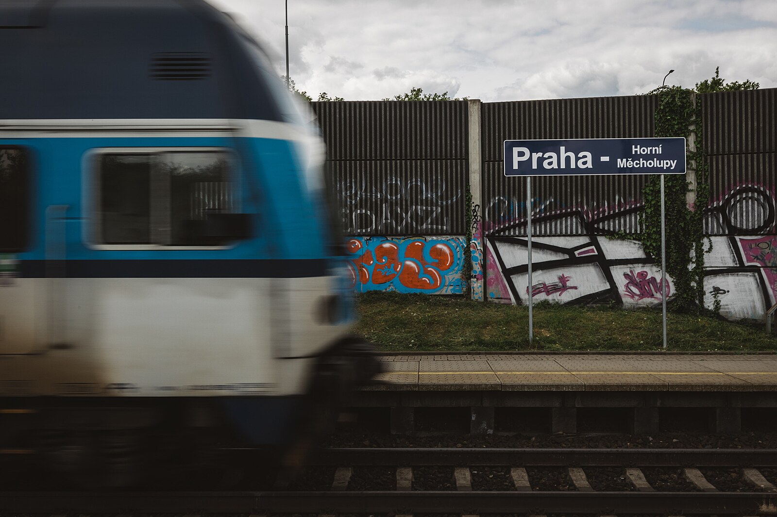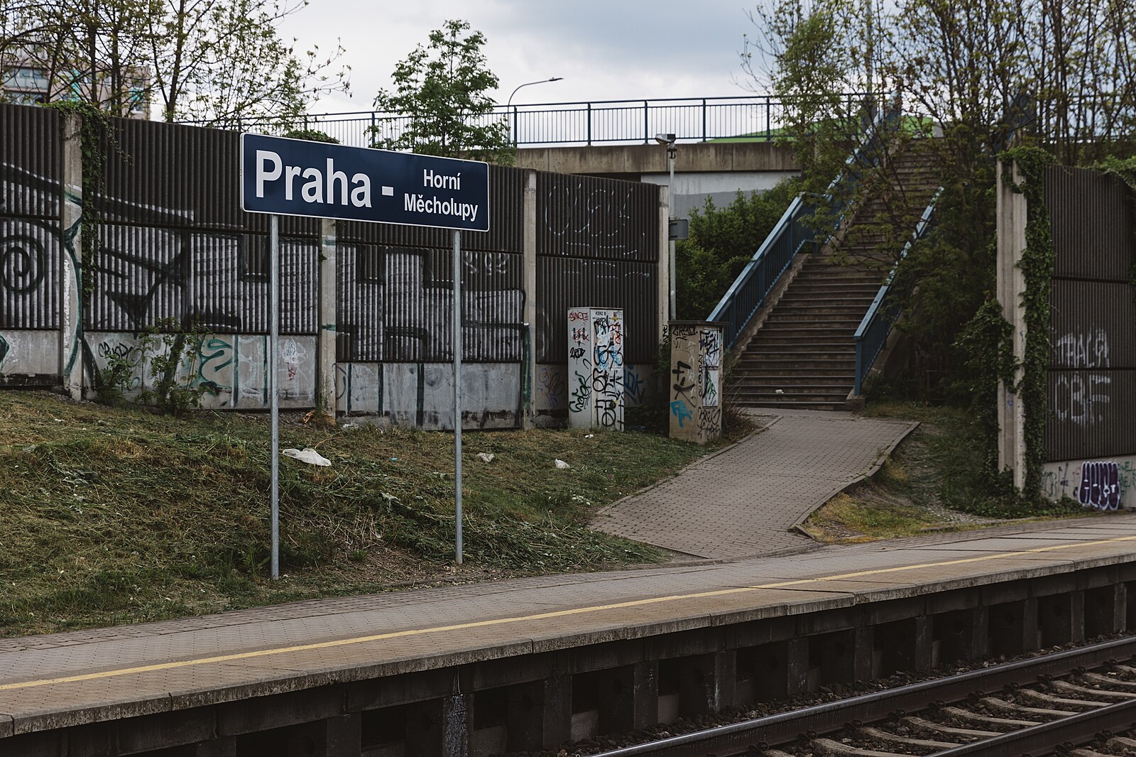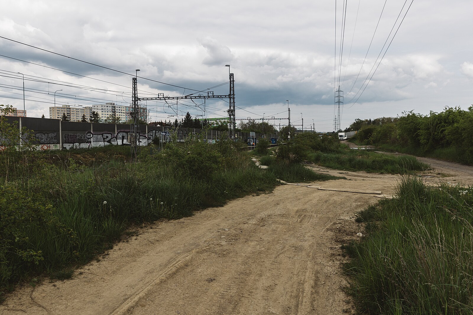Příkladem zanedbaného místa na okraji metropole je okolí vlakové stanice Praha – Horní Měcholupy. (11. května 2023)