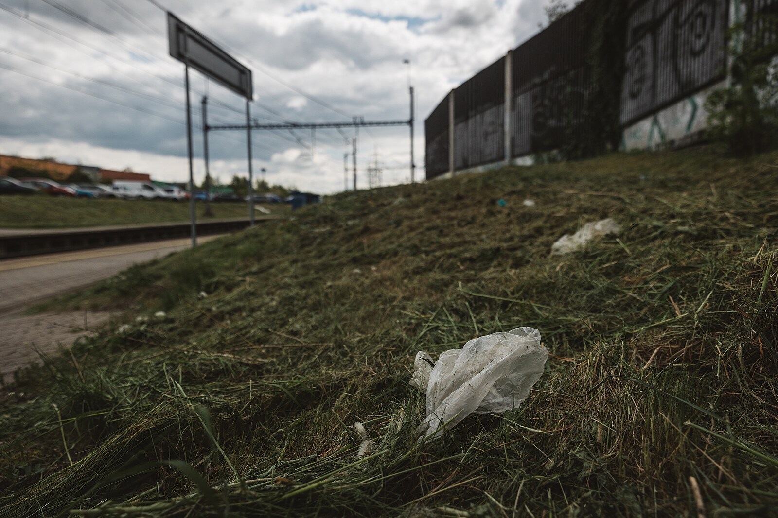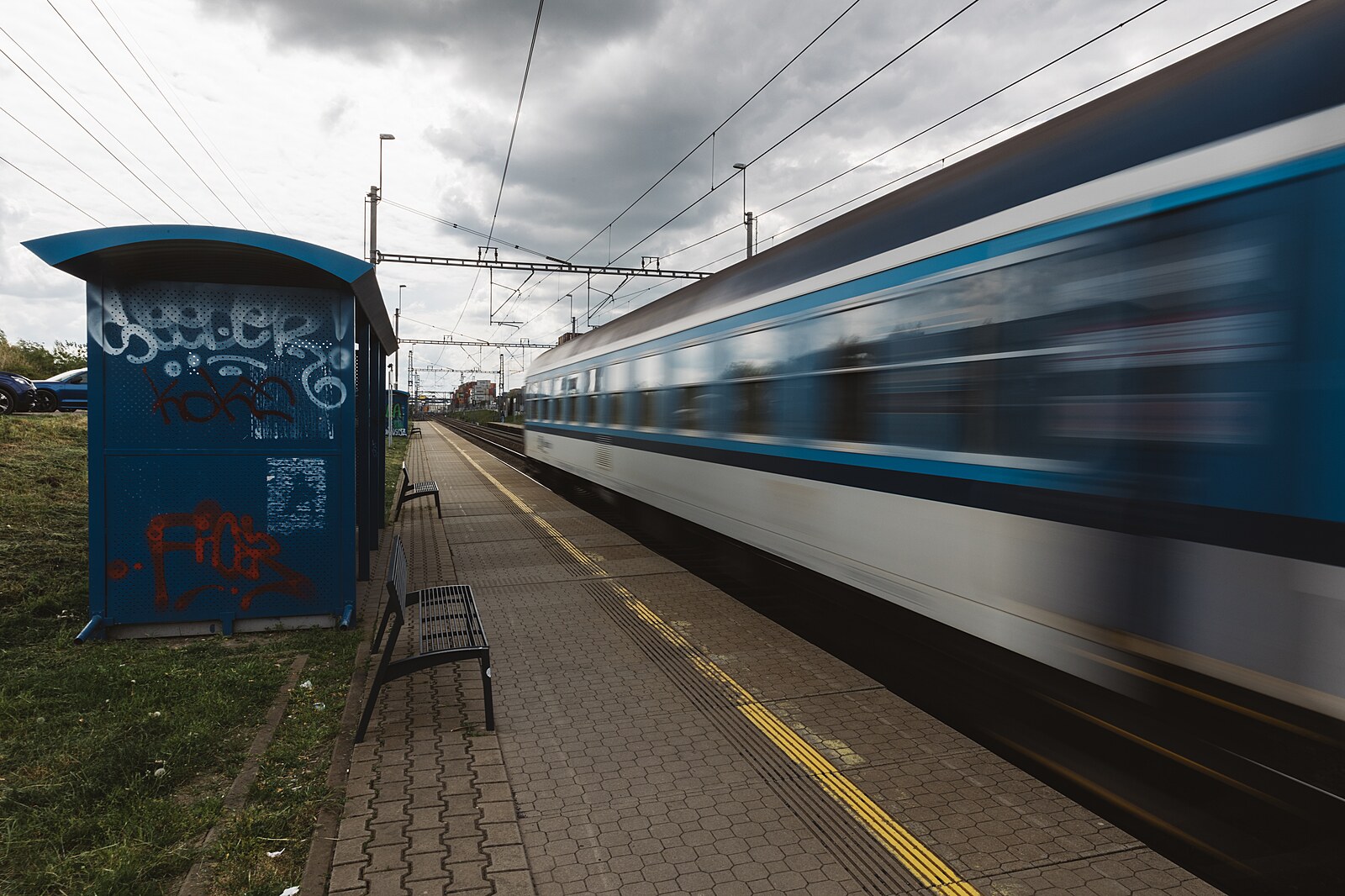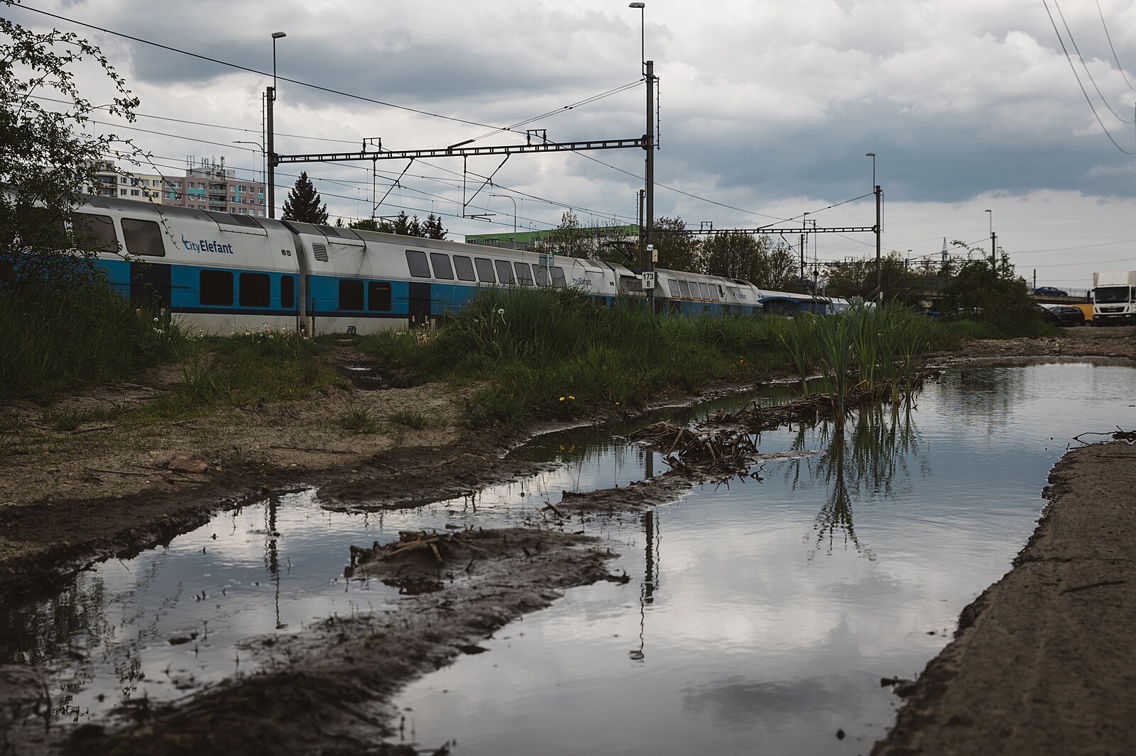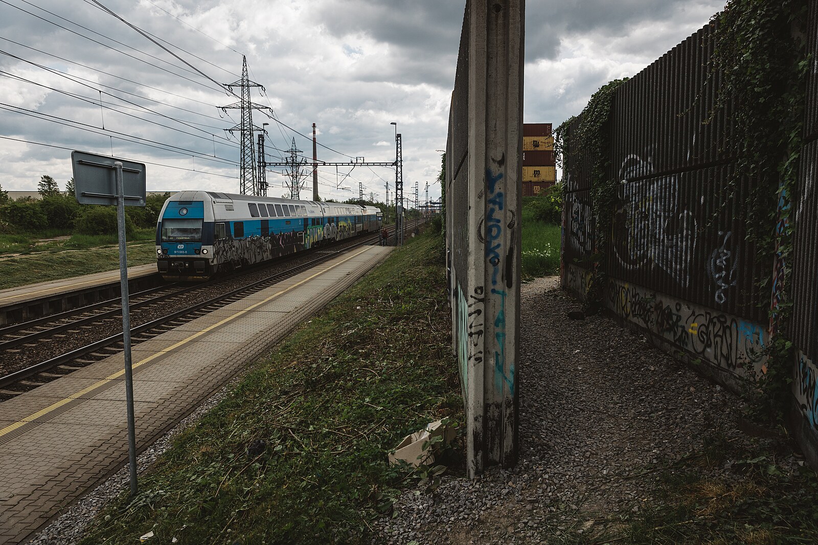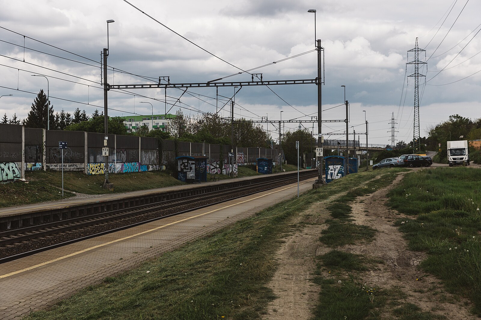 Příkladem zanedbaného místa na okraji metropole je okolí vlakové stanice Praha – Horní Měcholupy. (11. května 2023)