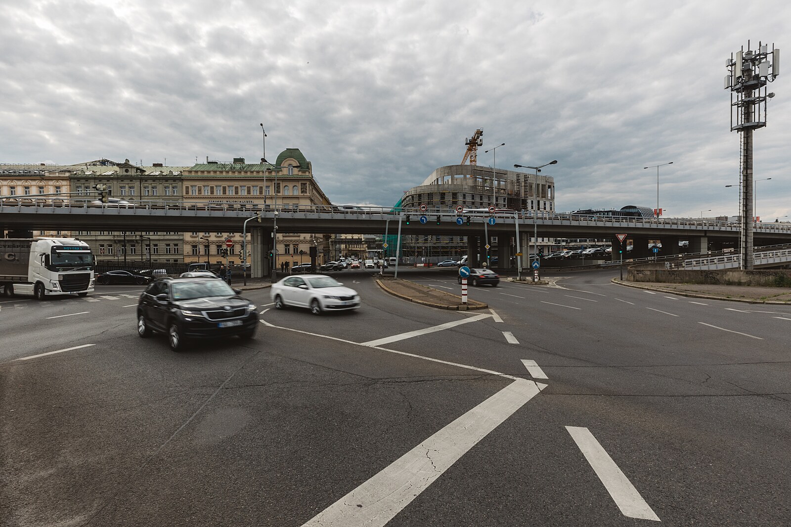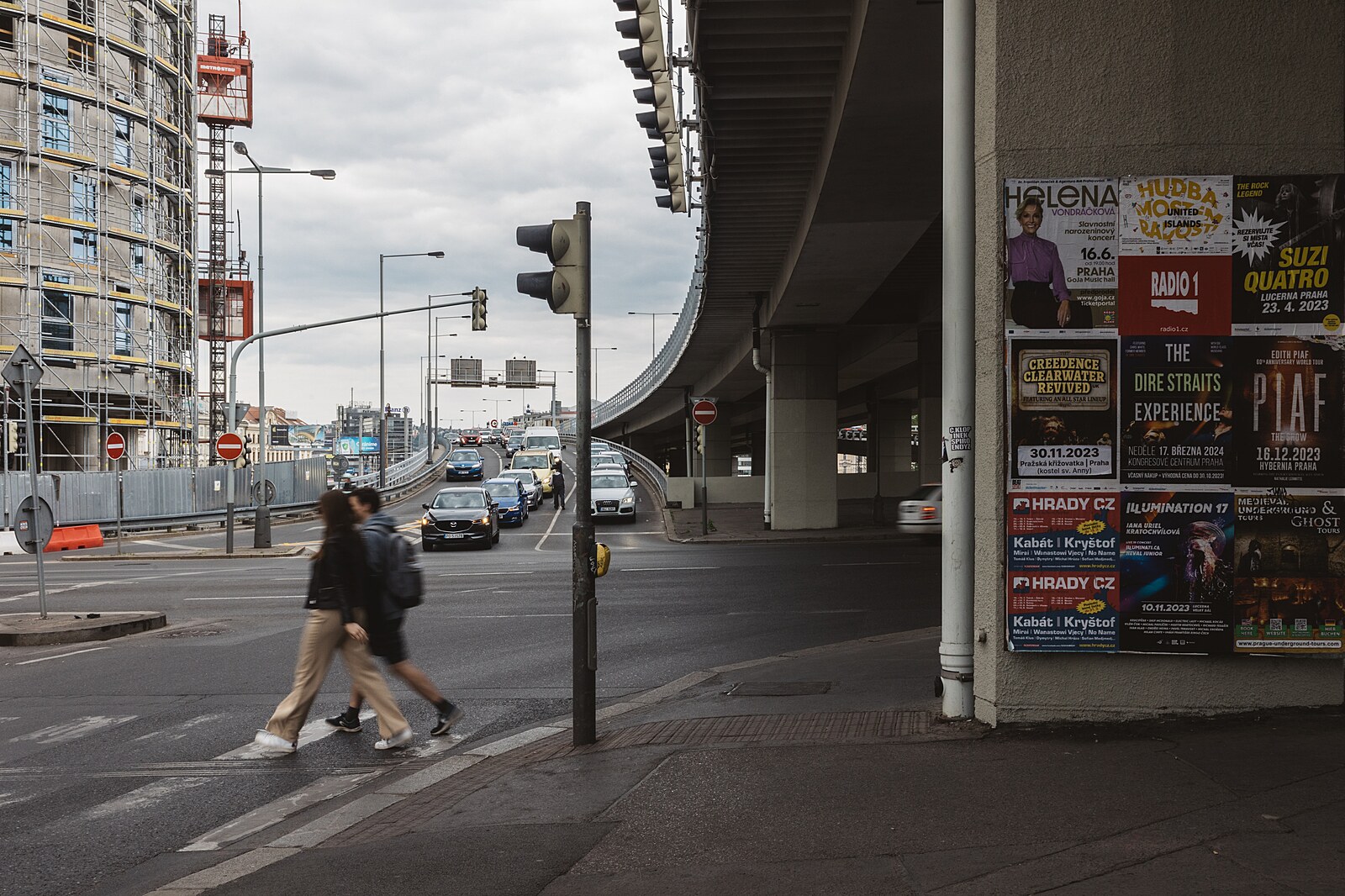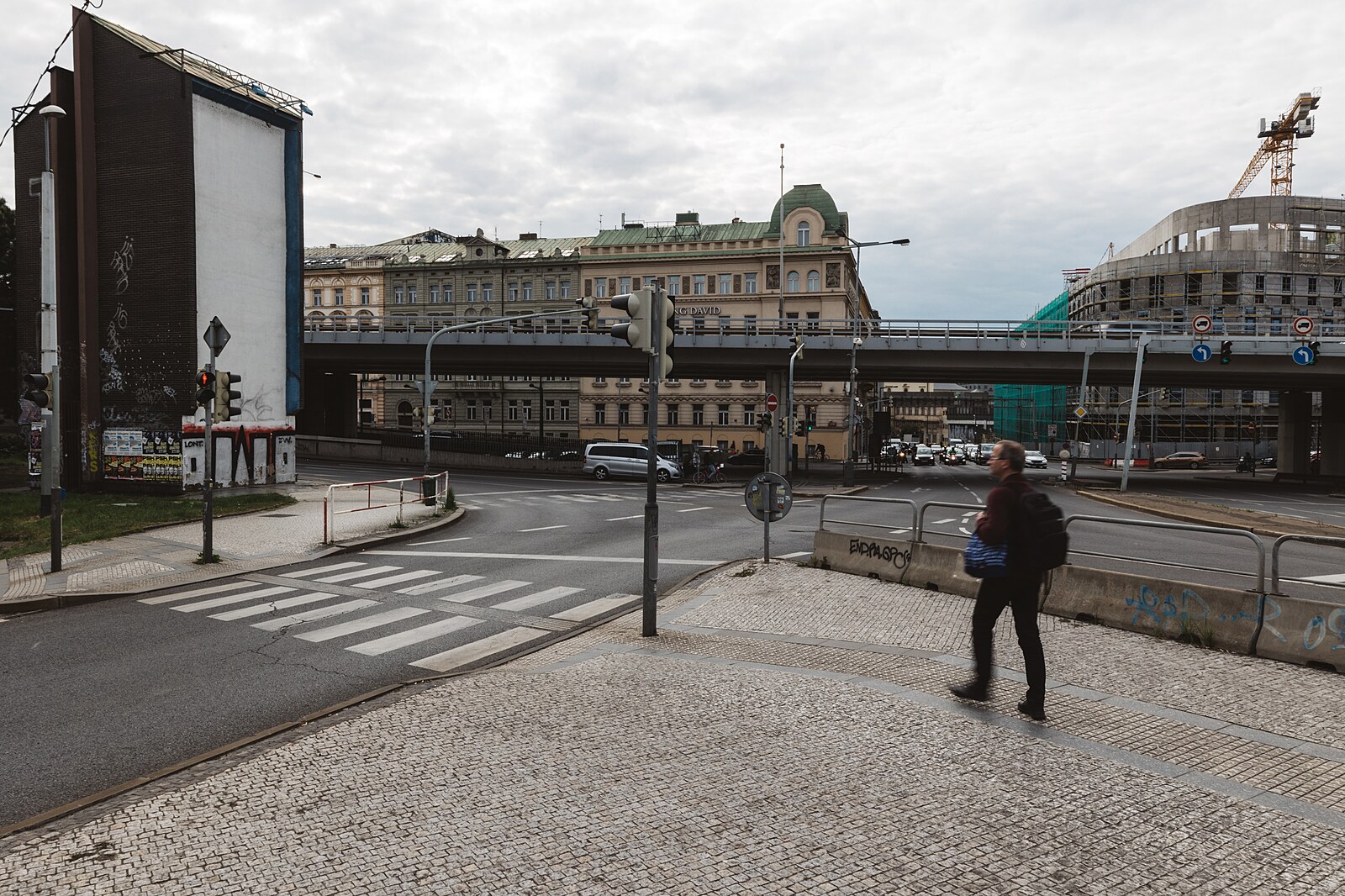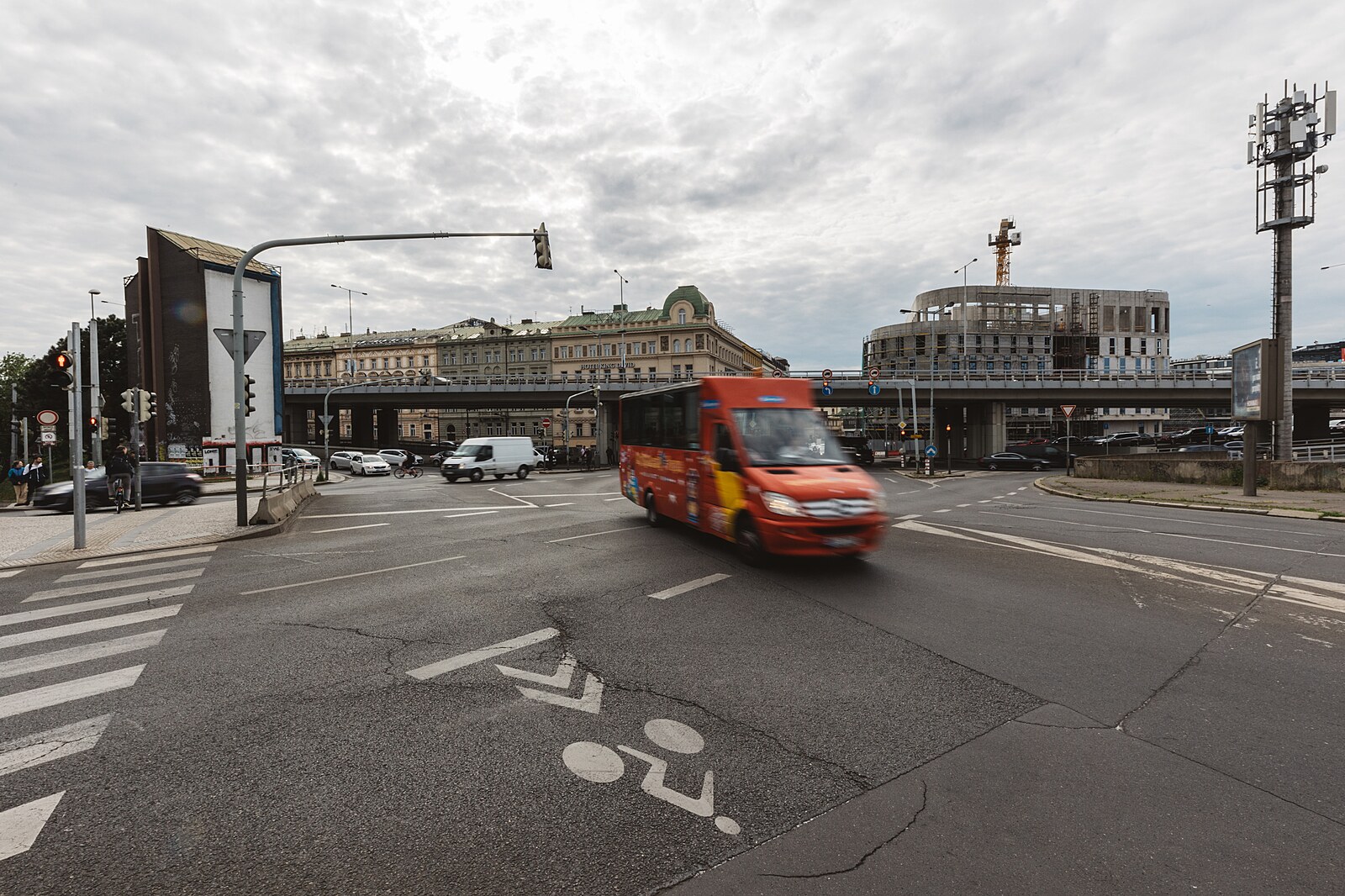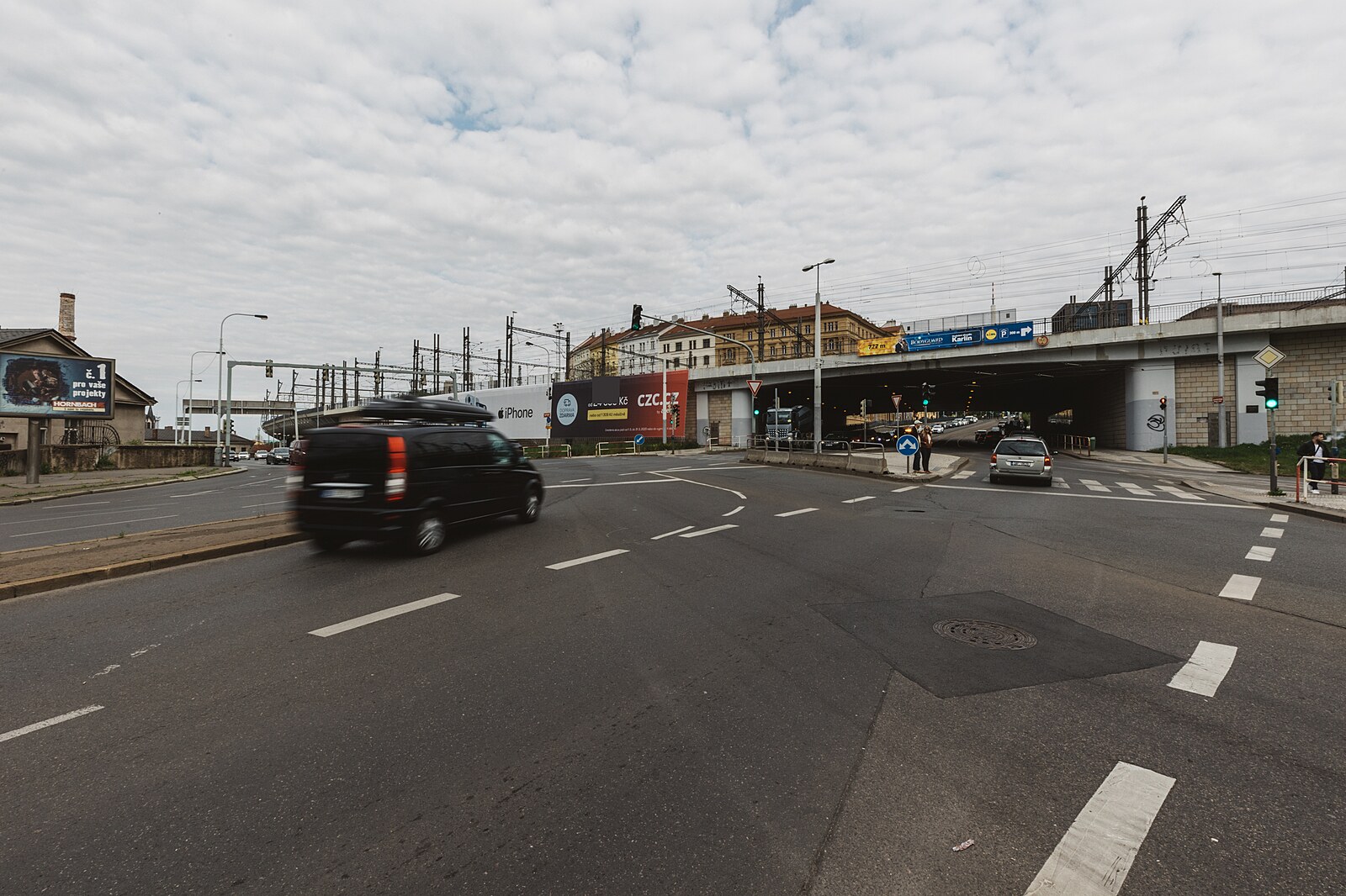 Frekventovaná a nepřehledná pražská křižovatka U Bulhara postrádá chodníky, přechody pro chodce i kvalitní osvětlení. Je také místem s vysokou nehodovostí. (11. května 2023)