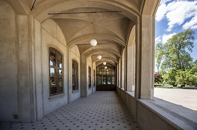 Chlouba Stromovky. Šlechtova restaurace je napůl opravená od roku 2021. Tehdy dělníci dokončili rekonstrukci kulturního sálu. Ve druhé fázi tam mají vzniknout například tři gastroprovozy. (13. dubna 2024)