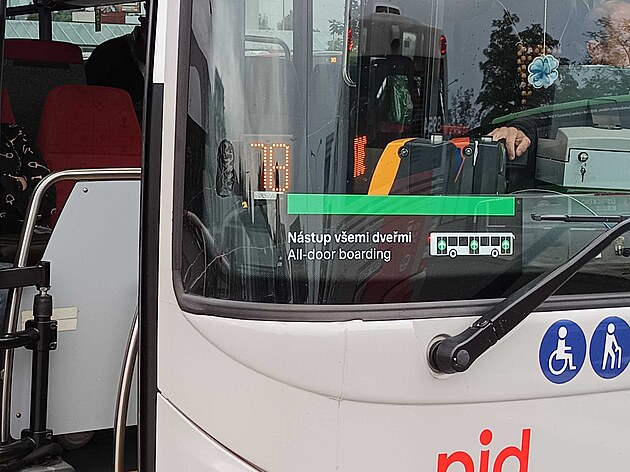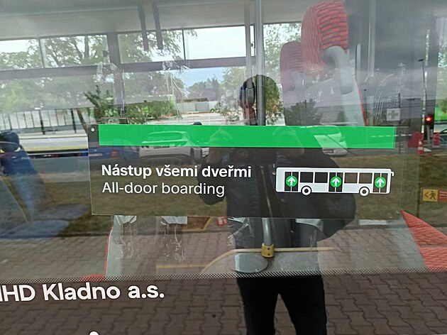 Do autobusu lze nastoupit i zadními dveřmi, lidé však zatím ze zvyku volí nástup u řidiče.