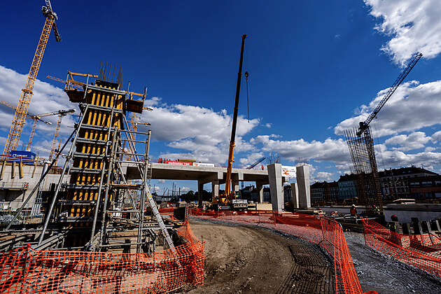 Rekonstrukce smíchovského nádraží je v plném proudu. Rok a půl po zahájení modernizace postoupila, buduje se podchod a nová lávka. (25. srpna 2025)