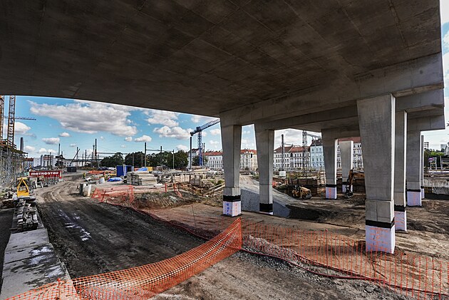 Rekonstrukce smíchovského nádraží je v plném proudu. Rok a půl po zahájení modernizace postoupila, buduje se podchod a nová lávka. (25. srpna 2025)