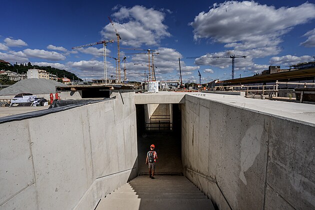 Rekonstrukce smíchovského nádraží je v plném proudu. Rok a půl po zahájení modernizace postoupila, buduje se podchod a nová lávka. (25. srpna 2025)