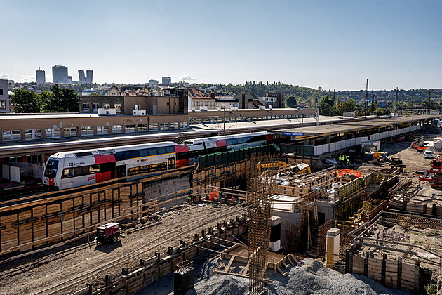 Rekonstrukce smíchovského nádraží je v plném proudu. Rok a půl po zahájení modernizace postoupila, buduje se podchod a nová lávka. (25. srpna 2025)