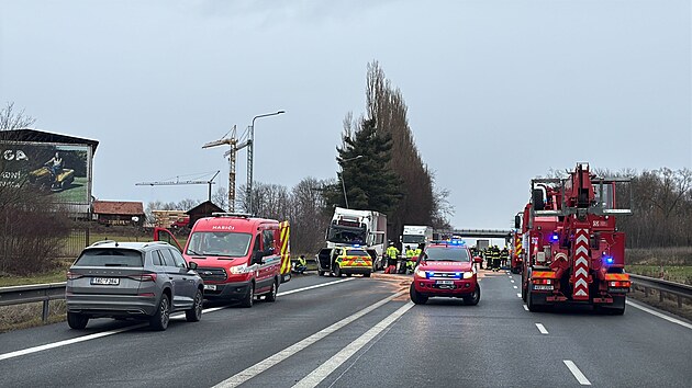 Místo nehody u Senohrab na silnici I/3. (7. ledna 2025).