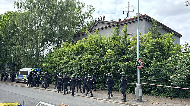 Policie vyklízí na Praze 6 dům, ve kterém chtěl kolektiv squaterů vybudovat společný prostor. (30. května 2025)