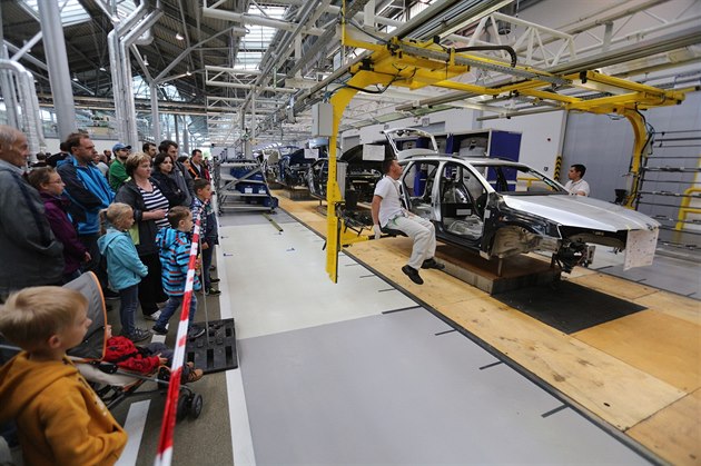Den otevřených dveří v mladoboleslavské automobilce přilákal 80 tisíc návštěvníků ze všech koutů země (30. května 2015).
