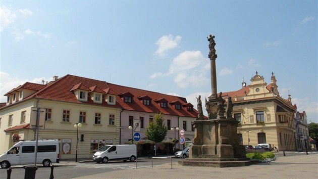 Mariánské sousoší na poděbradském náměstí. (26. srpna 2019)