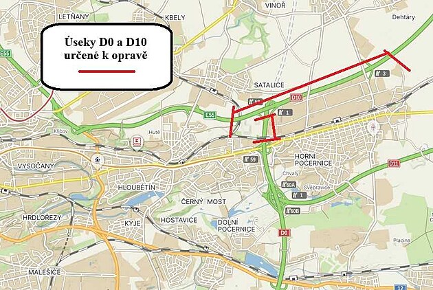Opravy úseků D0 a D10 potrvají podle ŘSD od srpna do listopadu. (25. července 2025)