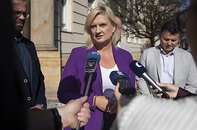 Povolební vyjednávání STAN - ODS. Na snímku hejtmanka Středočeského kraje Jana Pecková. (23. září 2024)
