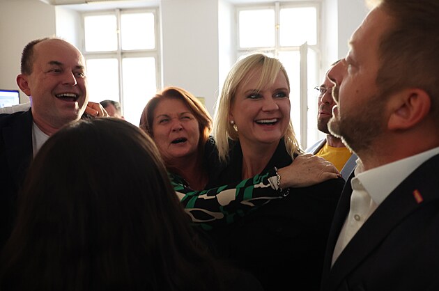 Ve volebním štábu hnutí STAN se slavil úspěch ve Středočeském kraji. Hejtmanka Pecková má šanci na obhajobu pozice. (21 září 2024)