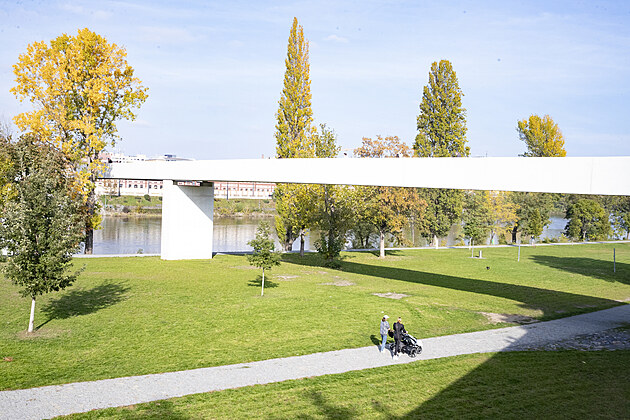 Štvanická lávka po odstranění ocelové konstrukce sloužící pro zvednutí mostu (18. října 2024)
