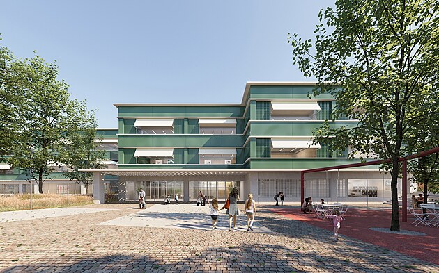 Svazková škola ve Staré Boleslavi vznikne na tříhektarovém pozemku mezi ulicemi Třebízského a Lhotecká (vizualizace).