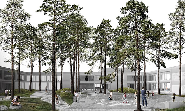Součástí školy bude i dvůr uprostřed školy, na němž můžou žáci trávit přestávky.