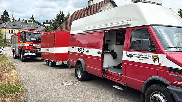 Kriminalisté a hasiči zasahují v obci Pyšely na Benešovsku kvůli podezření na přítomnost extrémně nebezpečných syntetických opioidů. (9. července 2025)