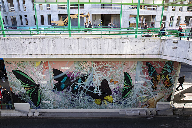 Stěny na autobusovém nádraží Černý Most ozdobily fotografie z Botanické zahrady Praha. K výzdobě stěn terminálu posloužil takzvaný vertikální tisk fotografií. (15. října 2024)