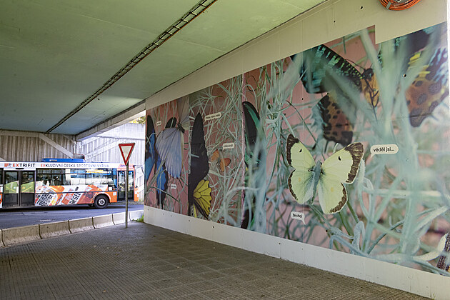 Stěny na autobusovém nádraží Černý Most ozdobily fotografie z Botanické zahrady Praha. K výzdobě stěn terminálu posloužil takzvaný vertikální tisk fotografií. (15. října 2024)