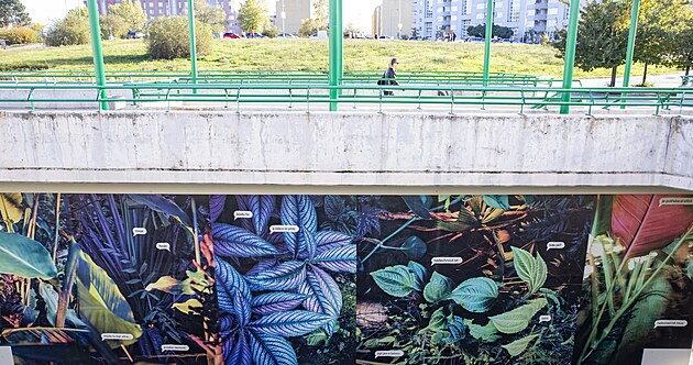 Stěny na autobusovém nádraží Černý Most ozdobily fotografie z Botanické zahrady Praha. K výzdobě stěn terminálu posloužil takzvaný vertikální tisk fotografií. (15. října 2024)