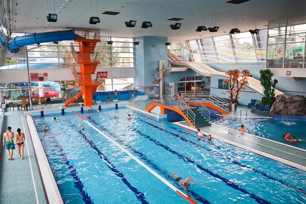 V šatnách je čisto jako v prezidentské kuchyni, to samé na toaletách. Ještě povinná sprcha a už lze libovolně pendlovat mezi vnitřním a venkovním bazénem, bavit se na atrakcích, odpočívat ve vířivce nebo jen tak ležet se zavřenýma očima a snít o moři.