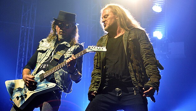 Josef Vojtek (vpravo) a Tomáš Krulich během koncertu kapely Kabát v Liberci (12. listopadu 2022)