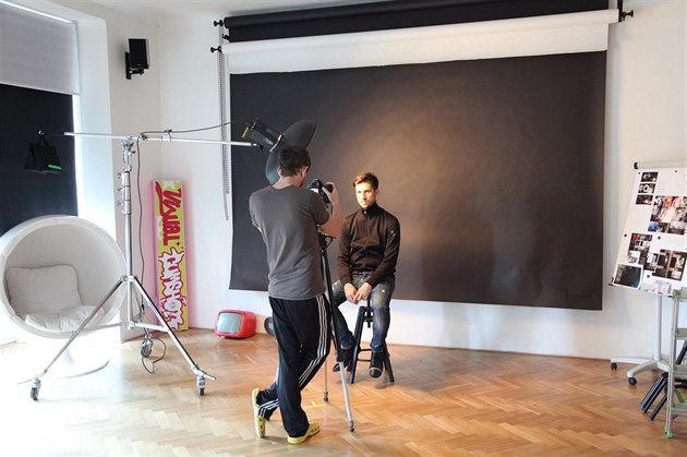 Fotograf Tomáš Třeštík a designér Jan Čapek při focení kalendáře Red Ribbon 2014 občanského sdružení Art for Life