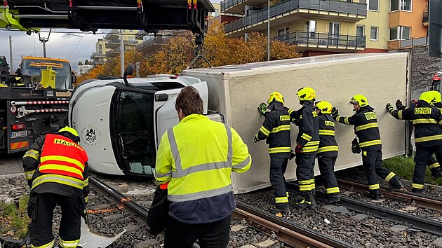 Nehoda nákladního automobilu a tramvaje na Barrandově